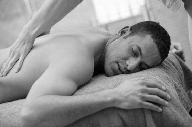 Therapeutic massage is performed by a registered massage therapist to relieve